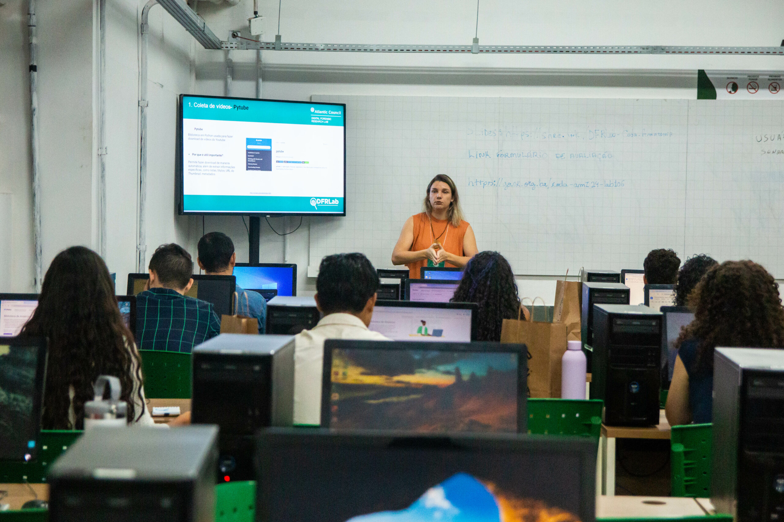 No entanto, para além do simples repasse de informações falsas – muitas vezes feito de forma não proposital –, existe também um fenômeno entendido como “campanhas de desinformação e propaganda”, que compreendem ações conjuntas e/ou coordenadas com o objetivo de tirar proveito de alguém ou alguma situação. Foi pensando nisso que a Atlantic Council Digital Forense Research Lab (DFRLab), neste workshop ministrado pela jornalista e pesquisadora Beatriz Farrugia, desenvolveu uma técnica de investigação focada nessas campanhas para encontrar os períodos, os atores, as plataformas e os métodos utilizados, com o objetivo de expor essas ações maléficas para a sociedade.