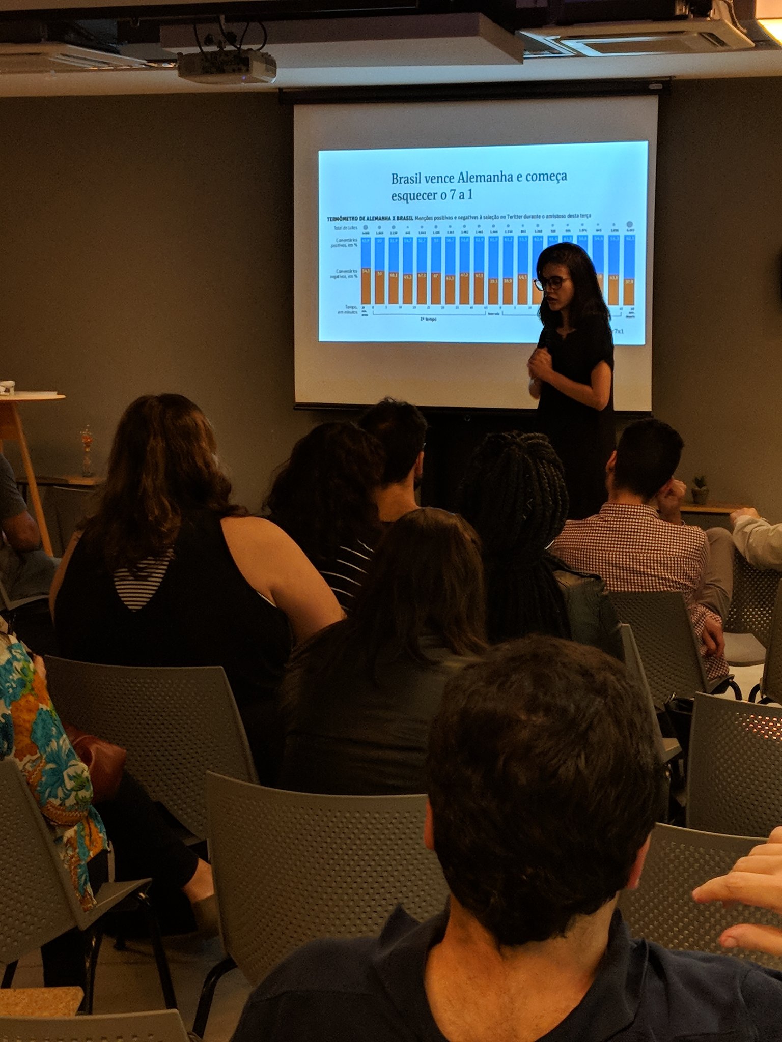 Diretora da Open Knowledge Brasil, Natália Mazotte iniciou o evento contando sobre a programação do Coda.Br neste ano. O evento acontece dia 10 e 11 novembro e ainda tem vagas abertas. Na sequência, Judite Cypreste apresentou o Projeto Coração Radiante, que uniu memes e análise de dados para entender as reações dos brasileiros aos jogos na Copa de 2018.