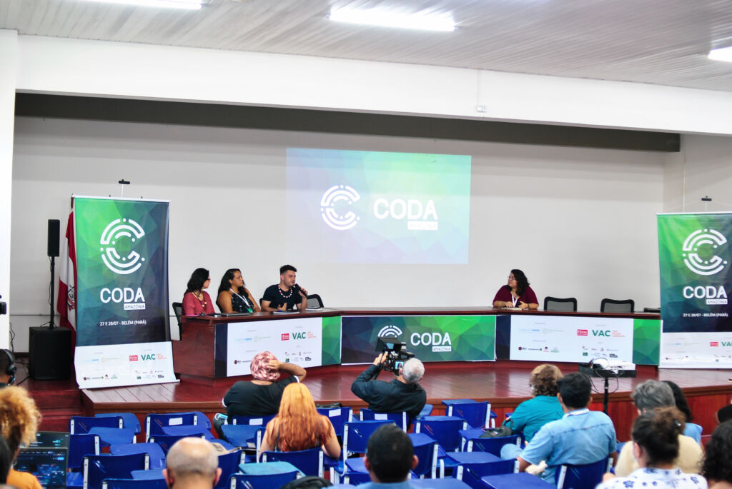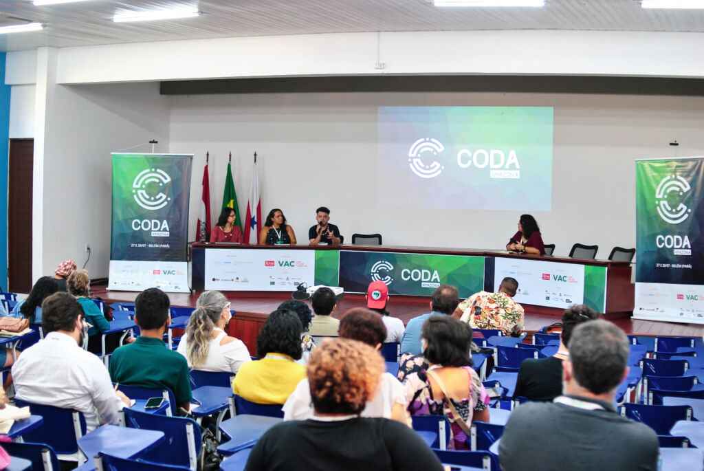 Jornalismo, ciência e meio ambiente foram os temas abordados no segundo painel do Coda Amazônia sob o título “Comunicando as mudanças climáticas com dados”. O objetivo foi discutir sobre os desafios enfrentados com as mudanças climáticas no Brasil, especificamente na Amazônia, e qual o papel do jornalismo na comunicação dessas mudanças. O debate teve mediação de Jéssica Botelho, do Atlas da Notícia; e participação de Juliana Mori, diretora editorial do InfoAmazonia; Marcos Wesley, representante da organização Tapajós de Fato; e Sonaira Silva, professora da Universidade Federal do Acre (UFAC).