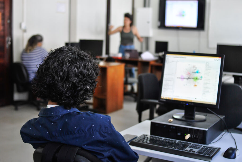 Após a apresentação do Gephi, participantes começaram a parte prática da atividade e receberam a orientação para instalar o programa e começar a manipular os recursos da interface para gerar grafos com retweets sobre o uso da urna eletrônica nas próximas eleições (tema escolhido aleatoriamente). Lori explicou como adicionar os filtros, que funcionam como uma espécie de rótulo a fim de parametrizar os dados.