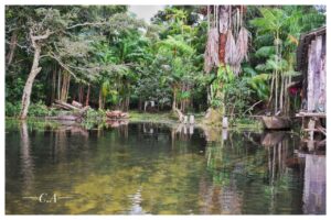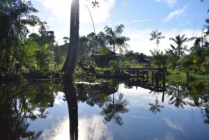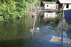 Outro foco do trabalho do grupo é promover a arborização dentro das comunidades extrativistas, mas outro problema enfrentado no território são os resíduos sólidos. “Há queimas controladas por falta de coleta seletiva local. Há pontos de entregas voluntários de materiais recicláveis nas comunidades e há uma cooperativa de catadores e catadoras para reciclar o material. A biomassa é trazida pela maré e proporciona a recuperação das áreas que antes sofriam pelas marés”, conta.