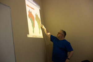 Um outro gráfico exibido para os participantes abordou a quantidade de trabalhadores da Ilha do Marajó. Segundo os dados da RAIS, em Salvaterra, um dos municípios da ilha, apenas 1.308 pessoas trabalham. O número mostra apenas os trabalhadores de carteira assinada, o que significa que o governo não contabiliza as demais atividades remuneradas. “É como se só 1 a cada 20 pessoas em Salvaterra trabalhasse. E isso influi nas políticas públicas”, completa Marcelo.