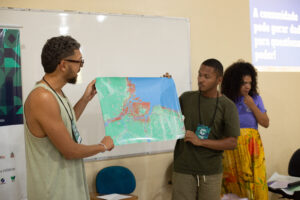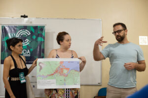 Ao fim da atividade, Luti, Bianca e João compartilharam 3 mapas locais, contextualizaram seus usos e propuseram uma dinâmica de colaboração para ativar a inteligência coletiva e incitar provocações sobre os aspectos de coleta, visualização e comunicação a respeito dos mapas abordados.