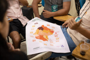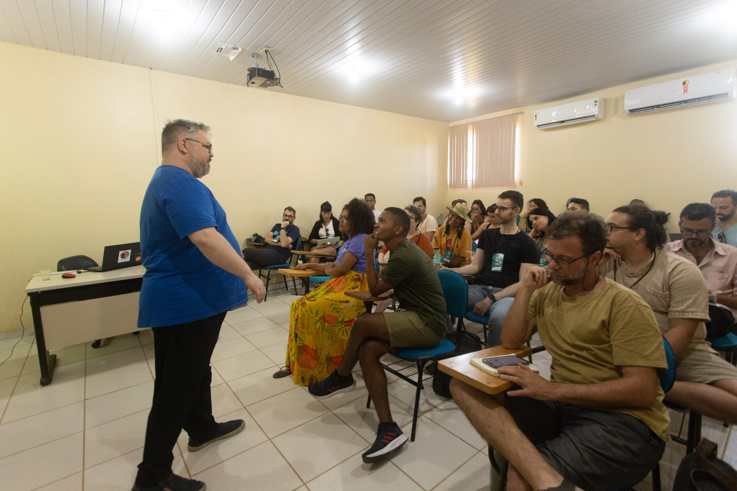 O workshop conduzido pelo jornalista Marcelo Soares, do Lagom Data, e pelos ativistas Bianca Barbosa, João Victor Meireles e Luti Guedes, do Observatório do Marajó, começou com uma pergunta simples: o que os dados sabem?