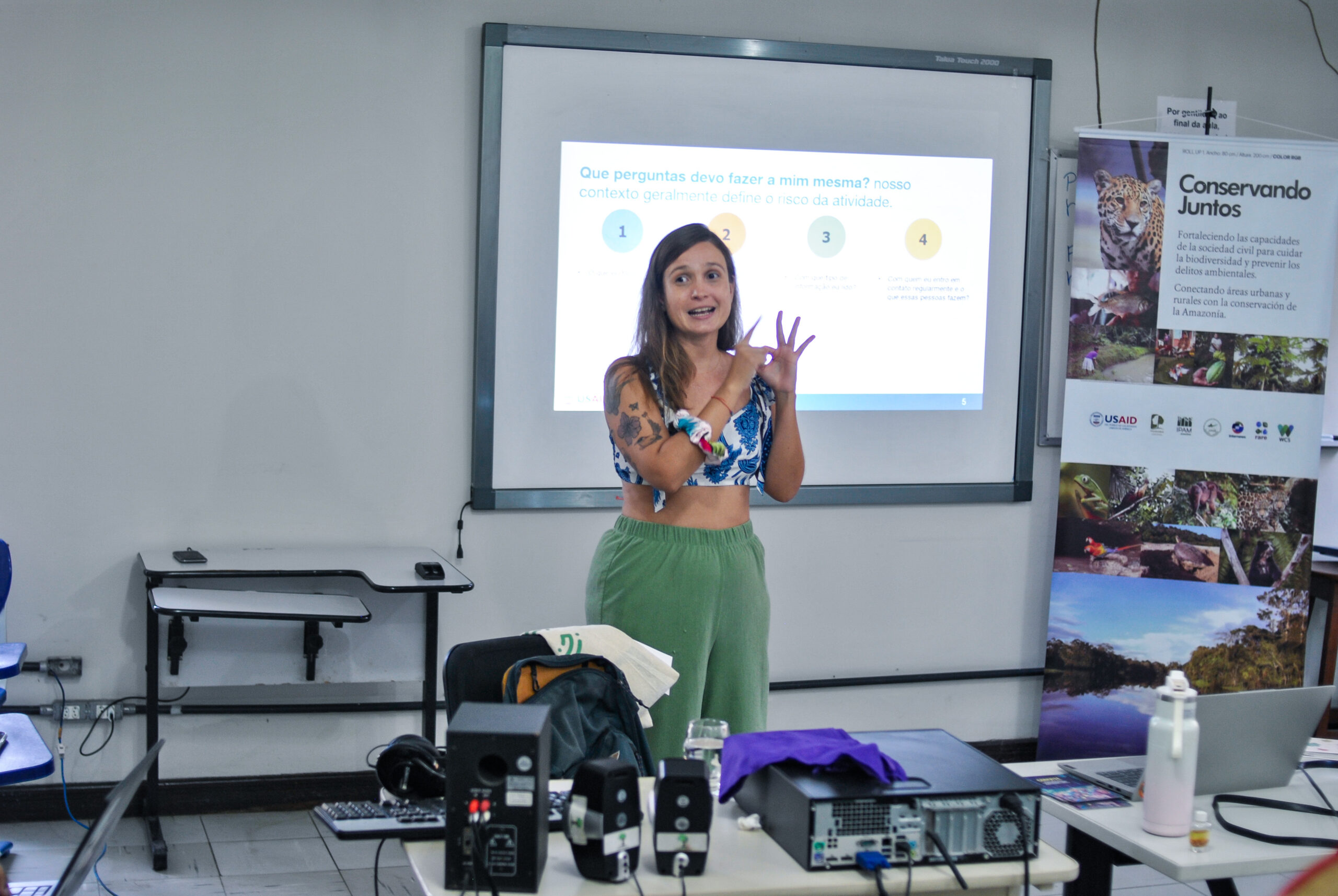 Para Nathaly Diaz, é essencial que jornalistas e defensores dos direitos humanos e ambientais cuidem da saúde mental. “É importante integrar momentos para se desconectar de espaços digitais, cuidar da saúde mental e implementar rotinas que permitam a segurança física”, afirmou.