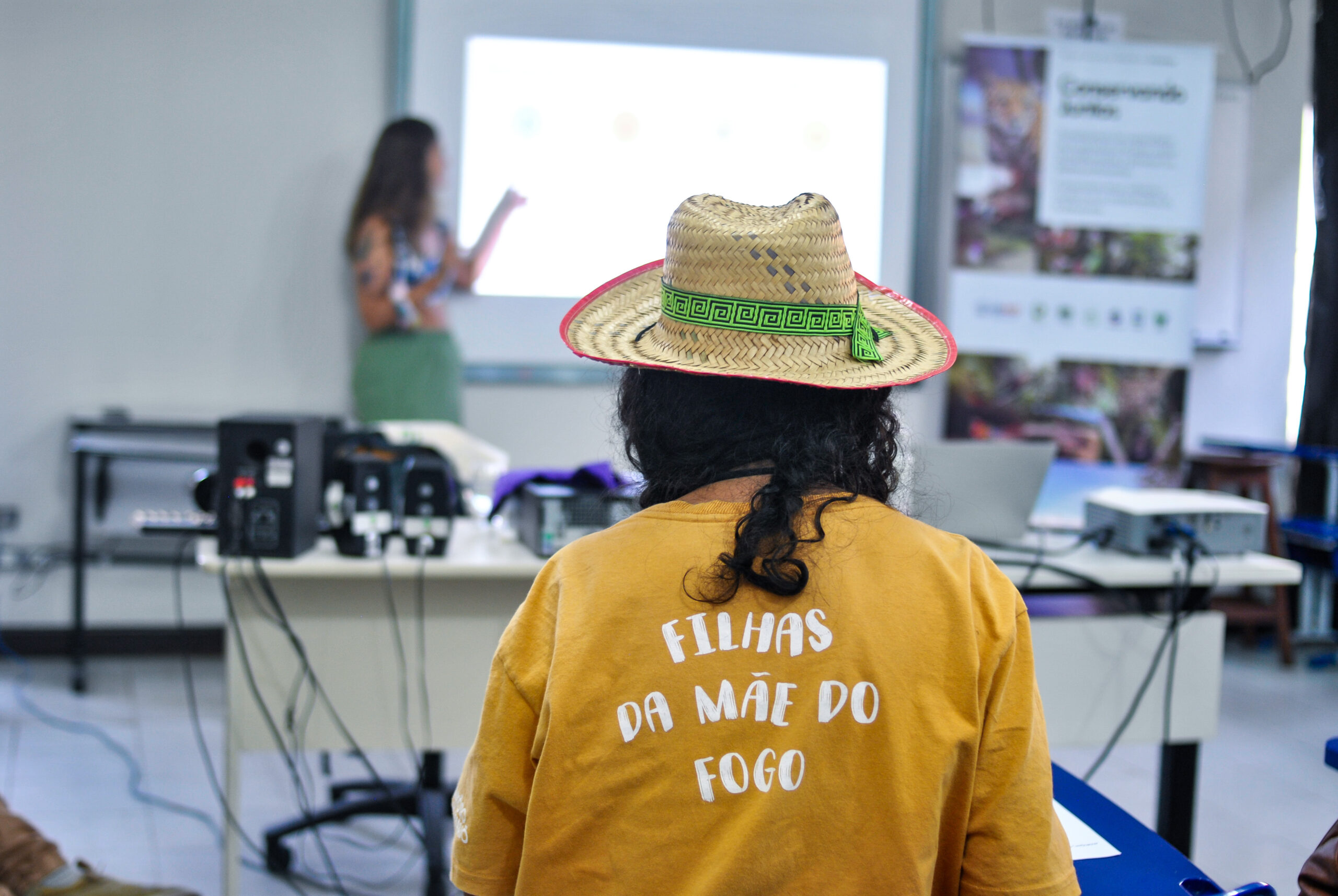 A comunicadora colombiana Nathaly Espitia Diaz, da Internews, iniciou seu workshop com uma dinâmica para que participantes pudessem entender melhor o conceito de anonimato, que consistiu na adoção de pseudônimos – a turma podia escolher nomes de plantas, árvores, frutas e ervas da Amazônia.