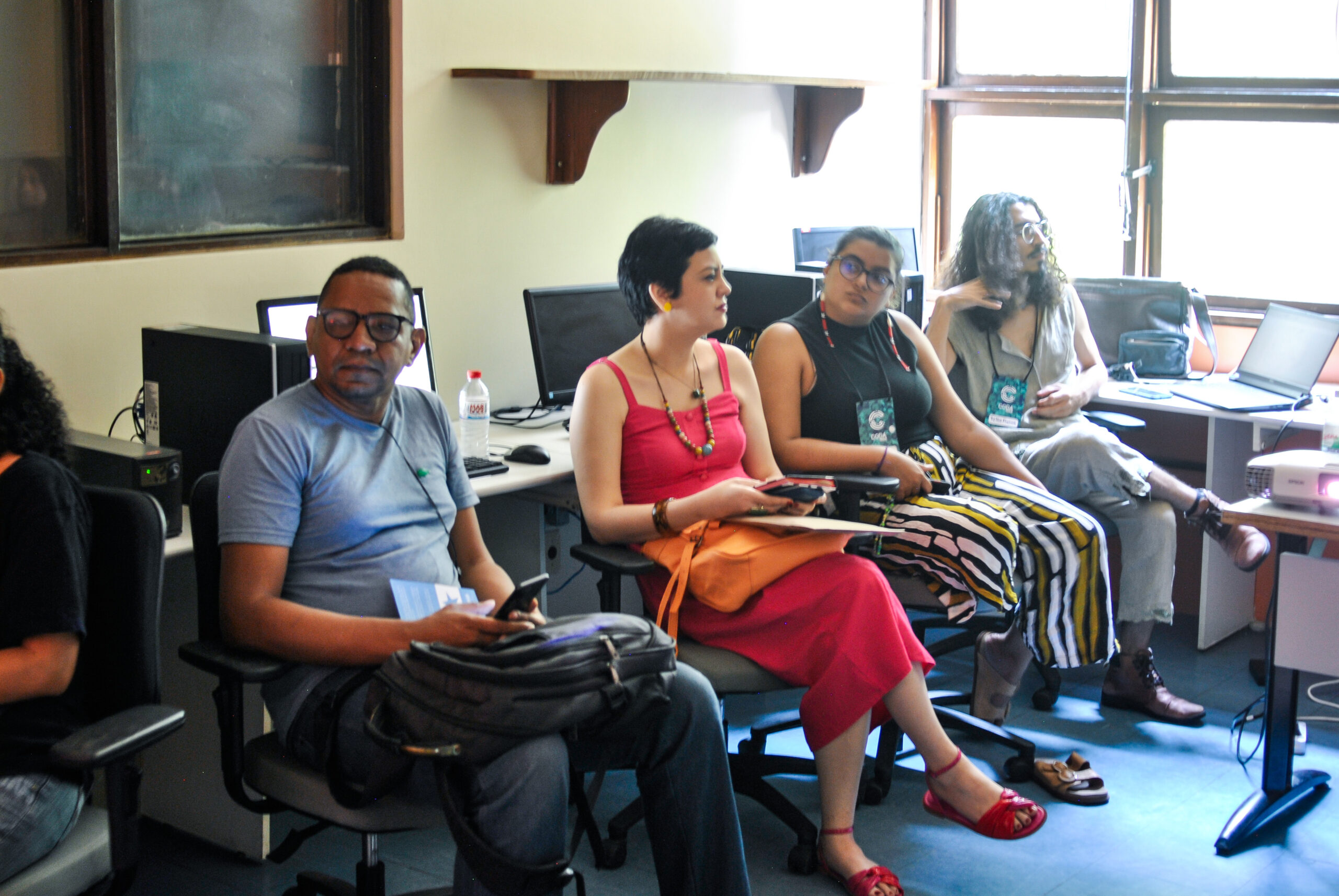 Durante o workshop, Érica nos introduziu também à Wikimedia Commons, um repositório que abriga uma rica variedade de mídias, incluindo áudios, vídeos, imagens e PDFs. Exploramos igualmente os Wiki projetos, com destaque para o Wiki GLAM, cujo objetivo é digitalizar obras de galerias, bibliotecas e museus, democratizando o acesso a acervos e promovendo a disseminação da cultura. No contexto do Wiki Glam, é conduzida uma curadoria colaborativa com museus, funcionando como um sistema de retroalimentação.