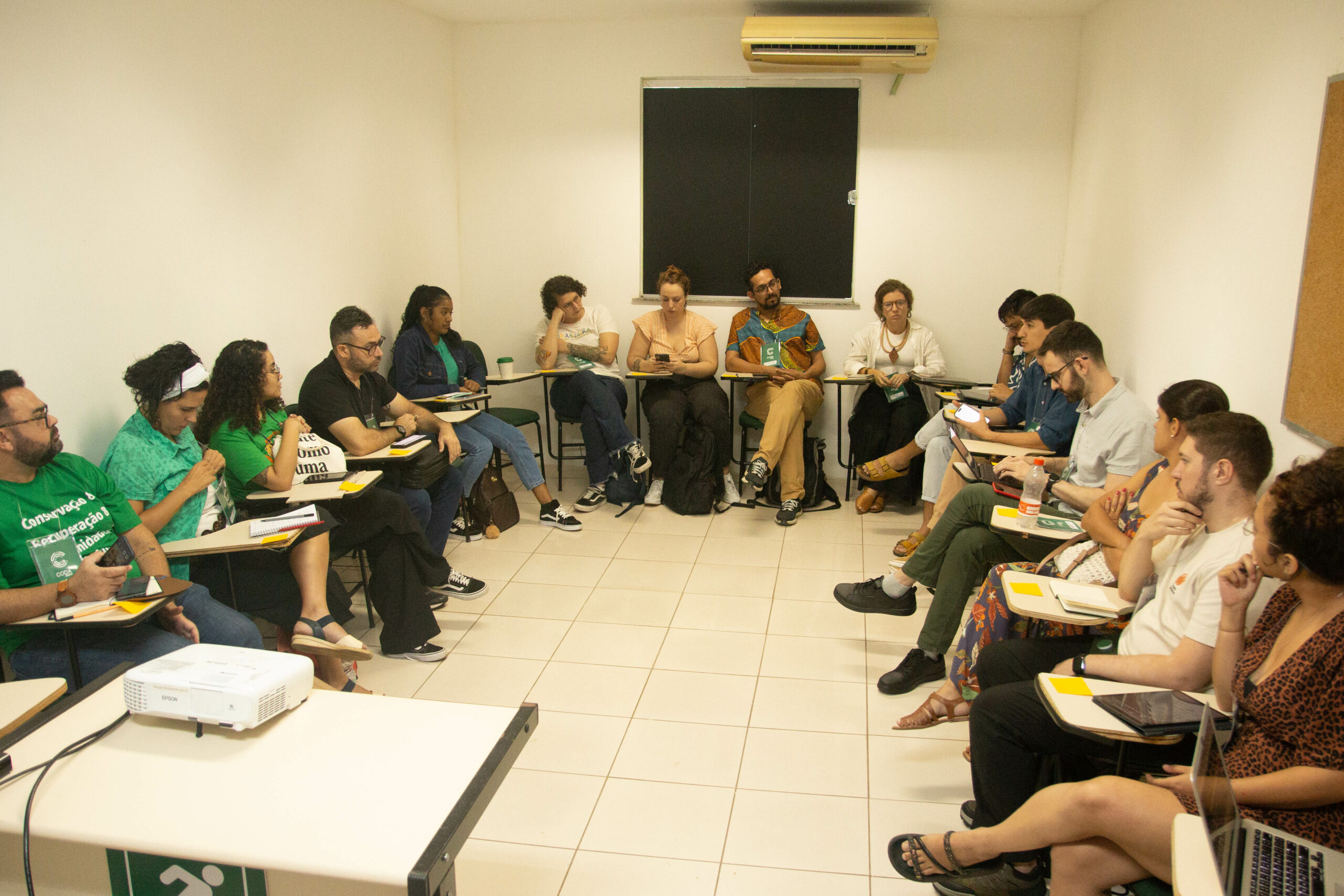 Após as apresentações, a mediadora desafiou o público da roda de conversa a individualmente propor três soluções para a pergunta: “Se você tivesse algum recurso, como o empregaria para combater as mudanças climáticas?”. As pessoas participantes contribuíram com as mais variadas respostas, dando início a um debate que teve como principais pontos: