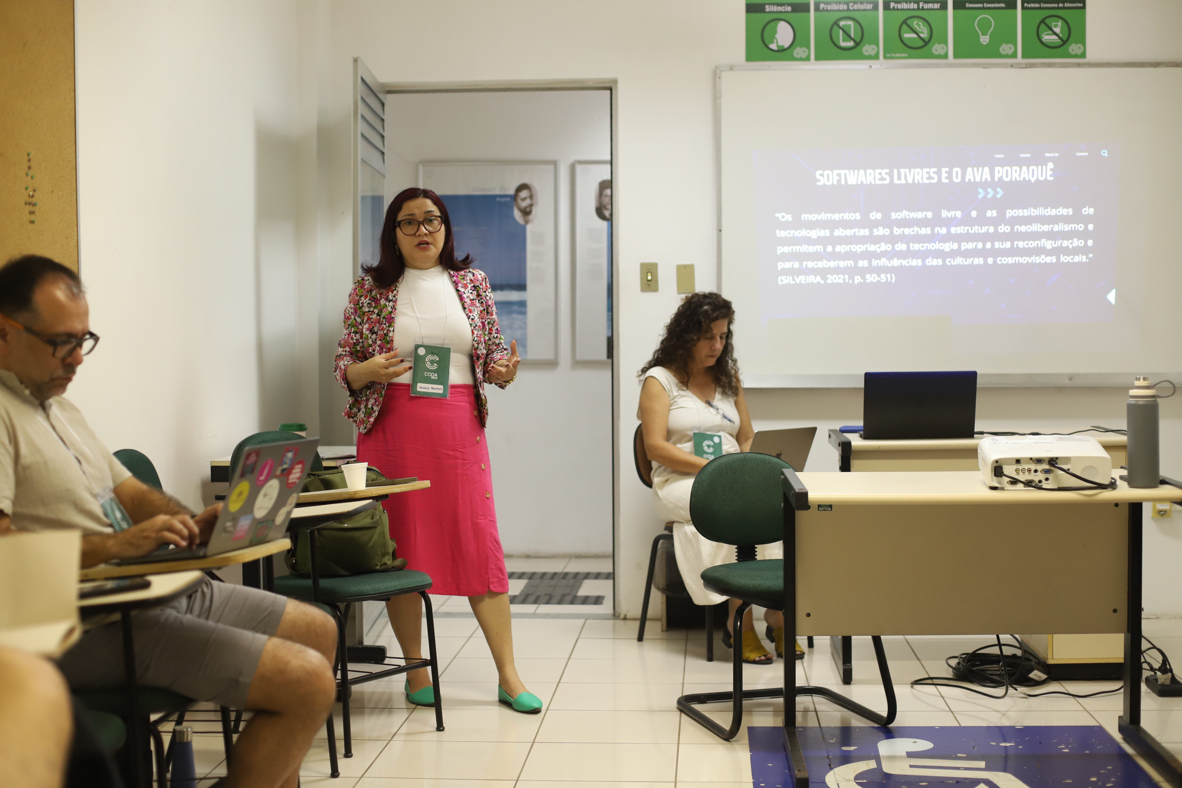 No primeiro momento do diálogo, a pedagoga e professora da Educação Básica Daniele Monteles apresentou o sistema digital de aprendizagem Ava Poraquê. Desenvolvido pela Fundação Escola Bosque (Funbosque), ele é, atualmente, referência na educação ambiental na ilha do Outeiro (PA). Daniele explicou que a base do sistema é um software livre que permite a reconfiguração de sistemas para atender as particularidades e as dinâmicas da Amazônia na sala de aula. Desde a sua criação, as pessoas desenvolvedoras da plataforma criaram novas formas para melhorar o aprendizado, como jogos lúdicos, a inserção de imagens e outras formas de tornar o ensino mais didático dentro da plataforma Moodle. Além disso, o sistema também pode ser utilizado por docentes em sala de aula e na educação de jovens e adultos.