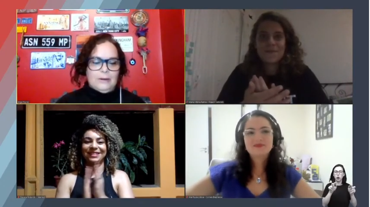 Angelina Nunes (Abraji), Maria Vitória Ramos (Fiquem Sabendo), Nayara Felizardo (The Intercept) e Ana Paula Lisboa (Correio Braziliense).