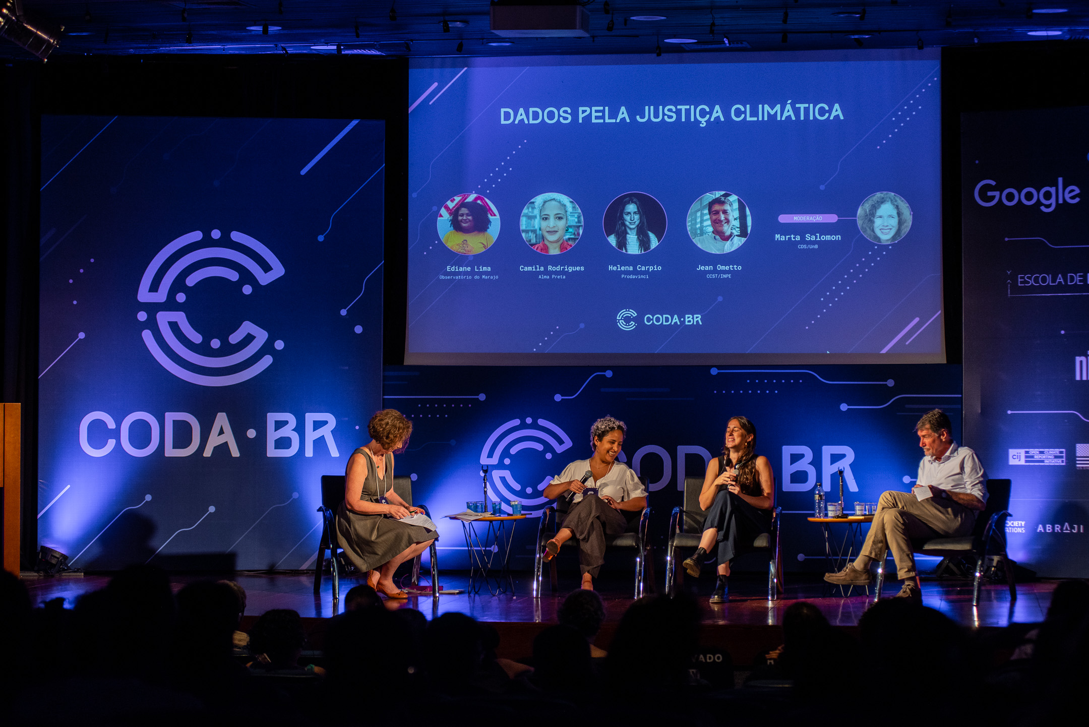 O último painel do primeiro dia de conferência refletiu sobre o uso de dados na compreensão da vulnerabilidade em situações de emergência climática. Mediado por Marta Salomon, pesquisadora associada ao Centro de Desenvolvimento Sustentável CDS/UnB, a conversa iniciou com uma exposição de Camila Rodrigues, jornalista de dados na Alma Preta, enfatizando os desafios envolvidos na criação de pautas com um recorte racial, destacando a complexidade de acessar dados relacionados às mudanças climáticas. No caso da temática em territórios quilombolas, por exemplo, apesar da crescente organização da Confederação dos Quilombolas e o inédito Censo Quilombola, há escassez de dados para o cruzamento de informações.