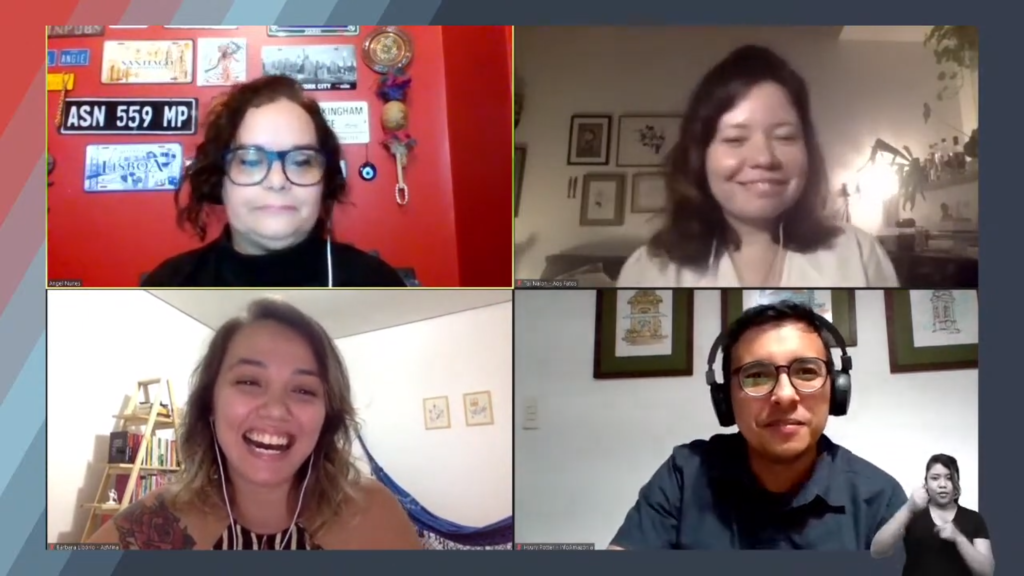 Angelina Nunes (Abraji), Tai Nalon (Aos Fatos), Bárbara Libório (AzMina) e Hyury Potter (InfoAmazônia).