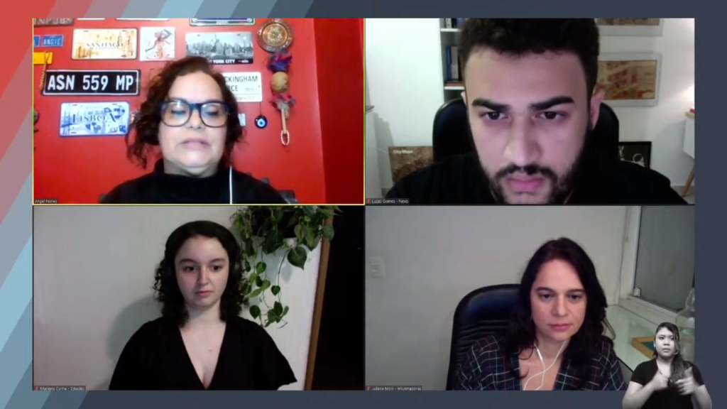 Angelina Nunes (Abraiji), Lucas Gomes (Nexo), Mariana Cunha (Estadão) e Juliana Mori (The Intercept).