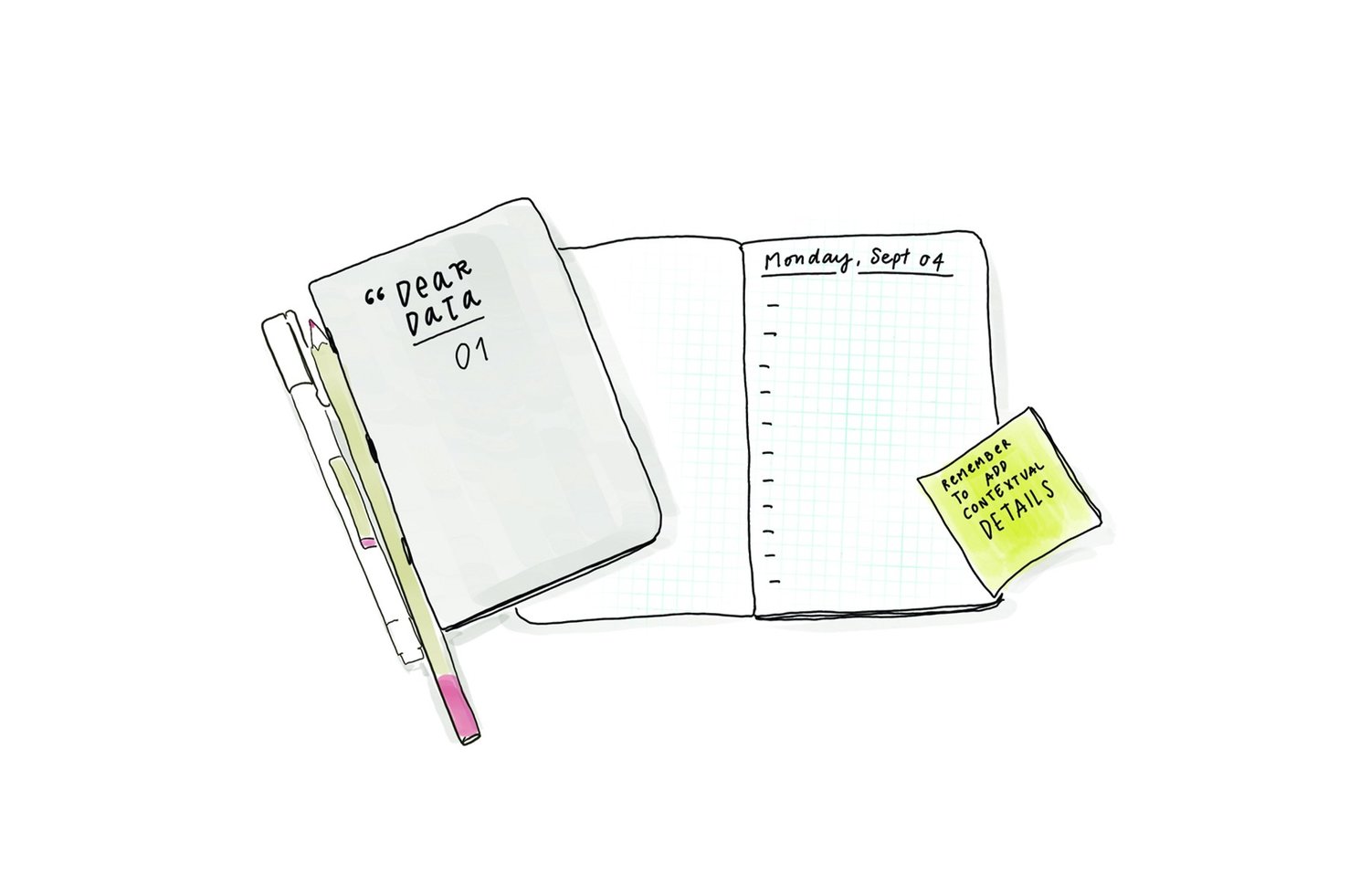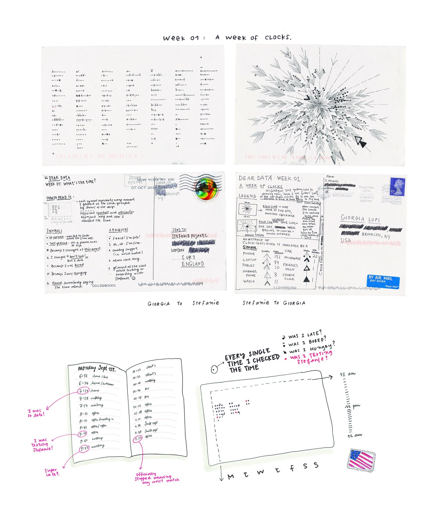 Nos primeiros sete dias de Dear Data, escolhemos um tópico aparentemente frio e impessoal: quantas vezes verificamos as horas em uma semana.
