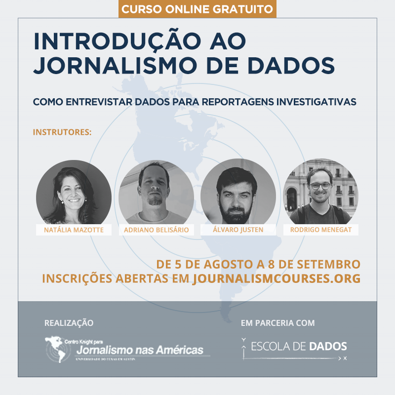 O Centro Knight para o Jornalismo nas Américas e quatro instrutores da Escola de Dados estão somando forças no curso online “Introdução ao jornalismo de dados: como entrevistar dados para reportagens investigativas”.