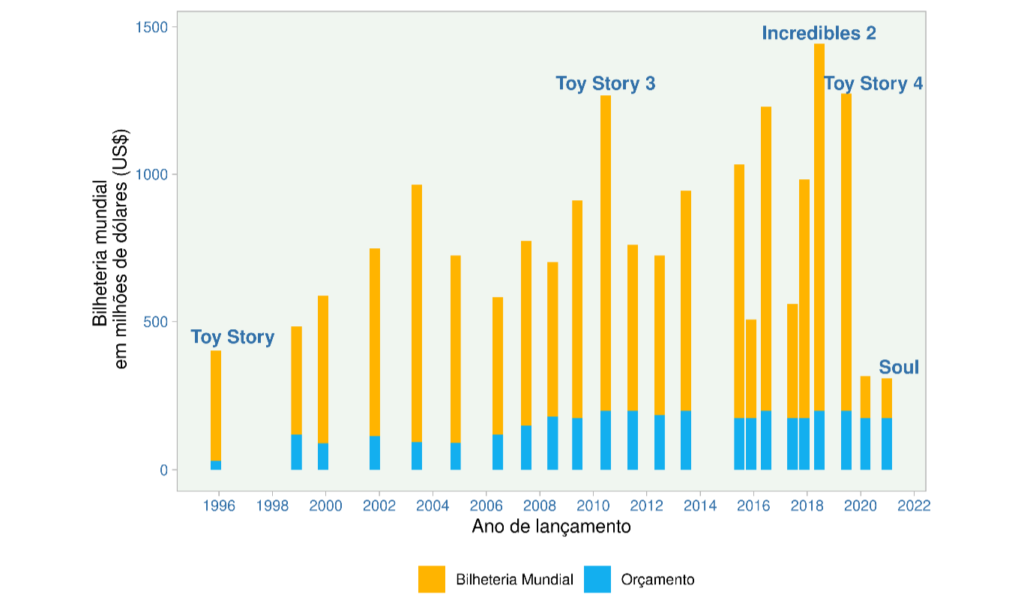 A pandemia aqui talvez tenha, de alguma forma, uma enorme influência sobre estes resultados. Considerando que os filmes Dois Irmãos: Uma Jornada Fantástica e Soul foram lançados no ano de 2020 e a pandemia impossibilitou a ida aos cinemas, não é adequado comparar o valor arrecadado em bilheteria destes filmes com os outros filmes da Pixar.