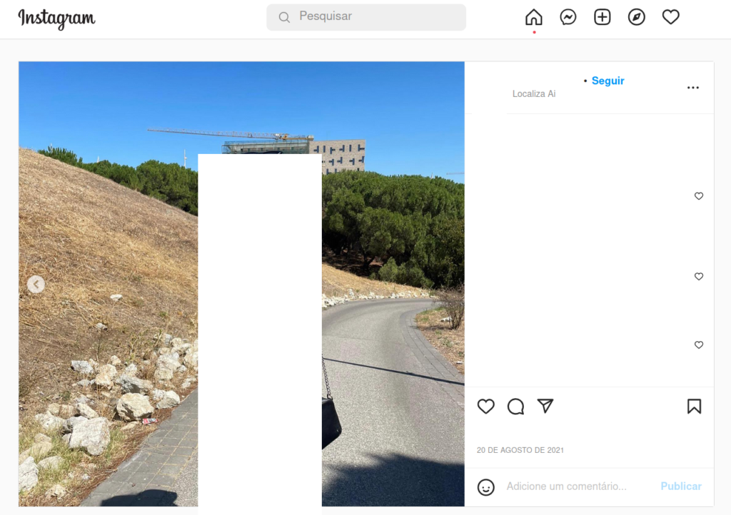 Escolhi uma foto aleatória de um perfil público no Instagram para servir como base para o desafio. A pessoa foi apagada da foto para proteção de sua identidade. Iremos partir do pressuposto que a foto foi tirada no dia 20 de agosto. Nosso objetivo é descobrir onde ela foi registrada e quando (ano e horário aproximado).