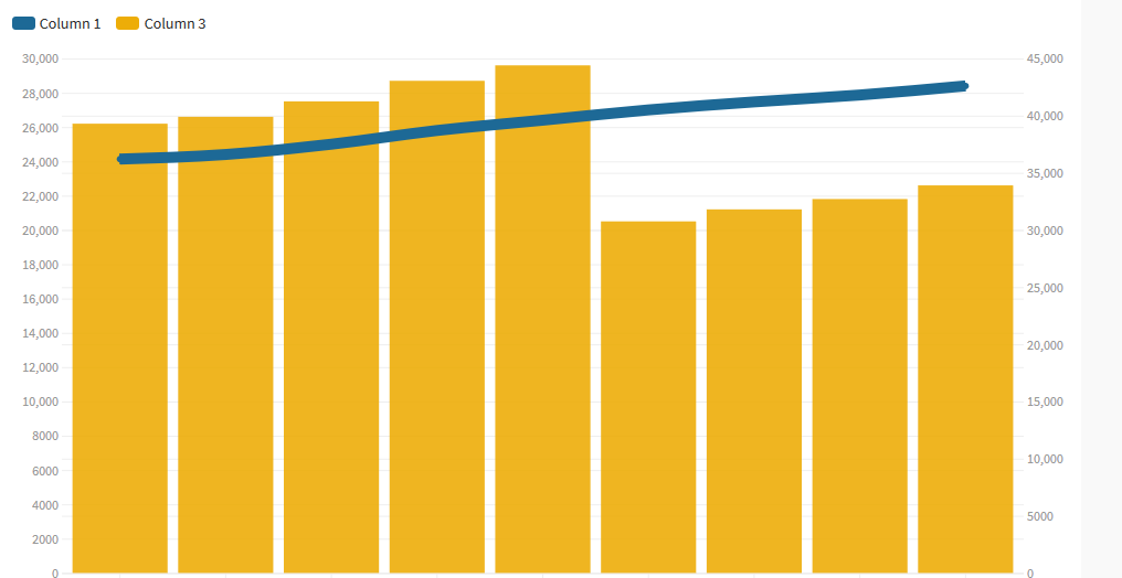3. Escolher um tipo de gráfico – neste tutorial, iremos utilizar um gráfico de barras e linhas. Selecione o template Line + Column, como neste exemplo: