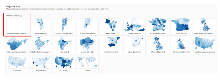 1. Abra o Flourish e crie um novo projeto a partir de um mapa em branco, como mostra a imagem a seguir.