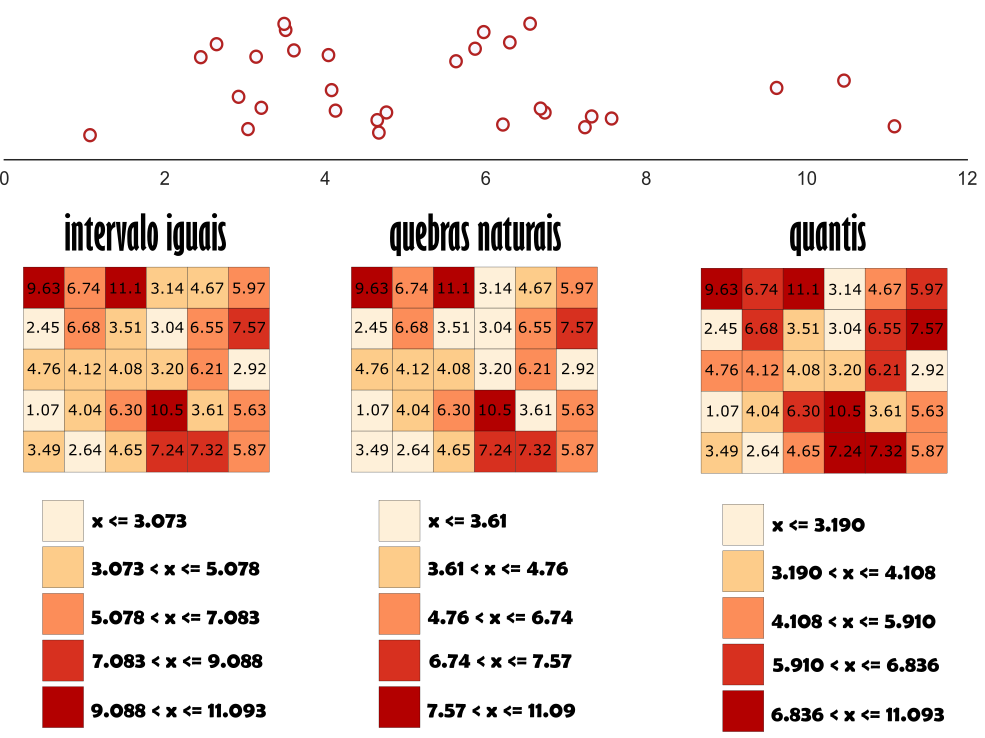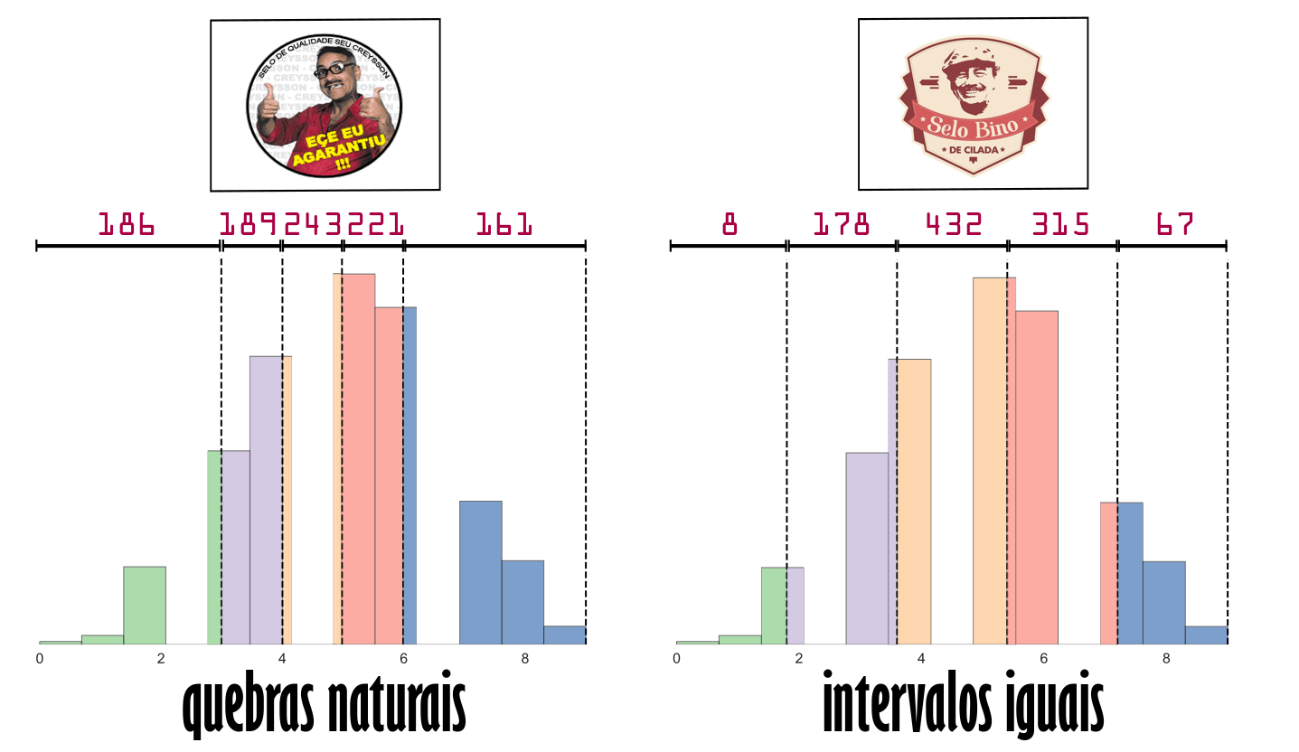 A grande maioria dos mapas temáticos faz uso de algum método para classificação de dados. O objetivo desse processo é organizar os dados em intervalos de dados ou em classes. A classificação se torna necessária para evitar um nível de granularidade muito elevado tornando a informação incompreensiva. Por outro lado, como apresentado em How to lie with maps um agrupamento incorreto pode distorcer a informação. Atualmente, existem programas (QGIS, ArcGIS, GeoPandas, etc.) que automatizam a produção de mapas com várias configurações default para “facilitar” a vida do usuário. Todavia, tais facilidades podem esconder armadilhas para usuários menos experientes.
