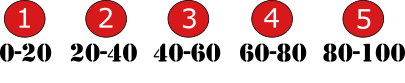 O método de intervalos iguais realiza uma divisão em classes com intervalos de mesmo tamanho, sendo mais apropriado a dados que se distribuam de forma semelhante por toda a amplitude do dataset. A seguir, temos como exemplo a categorização de um conjunto de dados arbitrário, que possui uma amplitude 100 unidades. Efetuamos a divisão do conjunto em 5 classes, com 20 unidades associadas a cada classe.