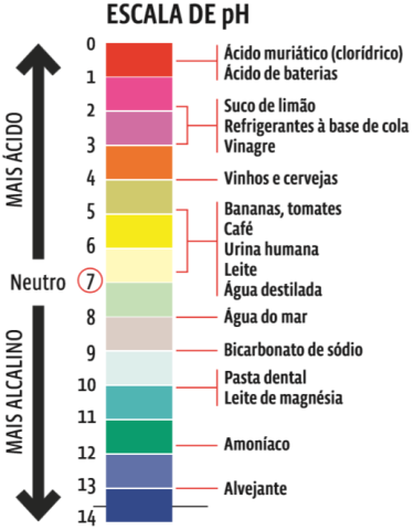 Uma das características desse método é a criação de classes com tamanho iguais. Todavia, quase sempre haverá uma distribuição desbalanceada dos dados nas diferentes categorias, podendo ocorrer alguma distorção por viés amostral em alguma classe, por exemplo. Por outro lado, a decisão de como realizar essa estratificação dos dados pode levar em conta o contexto da análise. O pH é uma medida utilizada em diversas áreas profissionais para mensurar o quão alcalino ou ácido um determinado meio é, como bem apresenta a ilustração abaixo do Guia do Estudante.