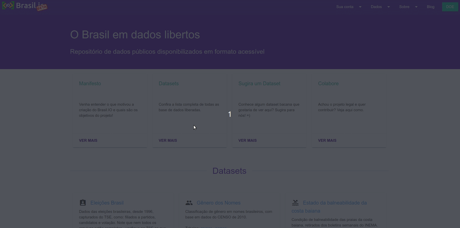 Você pode baixar o arquivo acessando a página principal do Brasil.IO e seguindo o caminho acima. Outra opção mais rápida é fazer o download diretamente via arquivo no Brasil.IO ou por meio deste link no Google Drive.