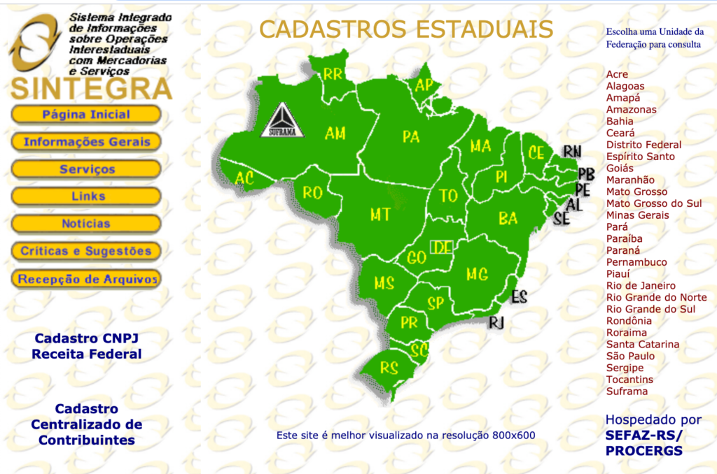 O Sistema Integrado de Informações sobre Operações Interestaduais com Mercadorias e Serviços (SINTEGRA) é um sistema para processamento de dados e documentos fiscais que integra secretarias de fazenda de todos os estados. Se tem interesse em informações de caráter econômico, com esse sistema é possível consultar a situação cadastral e resumo de informações sobre os contribuintes do Imposto sobre Circulação de Mercadorias e Serviços (ICMS).