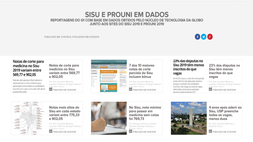 A familiaridade com as bases de dados da área e a dedicação a uma cobertura especializada são fatores que auxiliam na identificação de problemas e limitações de dados públicos na área da educação. Por conta de dificuldades como histórico e dicionários de dados limitados, os microdados desses programas são menos utilizados e um pouco mais difíceis de serem analisados. Assim, a equipe do G1 passou a disponibilizar um dashboard com análise de dados do Sisu e do Prouni.