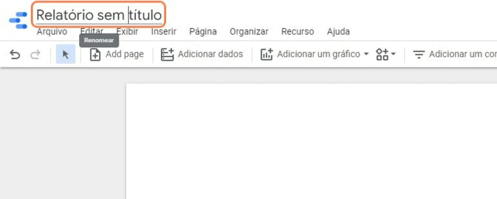 Depois disso, renomeie seu dashboard, clicando no lado superior esquerdo no nome ‘Relatório sem título’ e colocando um nome a sua escolha.
