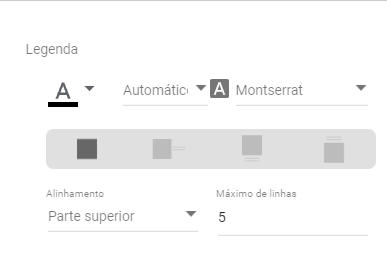 - Nessa mesma aba, procure o campo Legenda e escolha o primeiro quadrado. Com isso, iremos remover a legenda (NU_PARTICIPANTES) do gráfico. Passando o mouse por cima, você pode ver que os outros quadrados apresentam outras opções de posicionamento para a legenda.