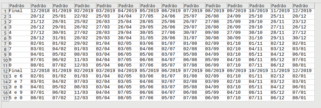 2) Coloque um arquivo PDF com dados em formato de texto (não como imagem) na mesma pasta onde o arquivo tabula-java se encontra. Um exemplo de arquivo PDF assim é esta tabela disponibilizada pelo Governo Federal com um calendário de pagamentos para 2019. Vamos baixar este arquivo na mesma pasta do tabula-java e renomeá-lo para “pagamentos.pdf”.