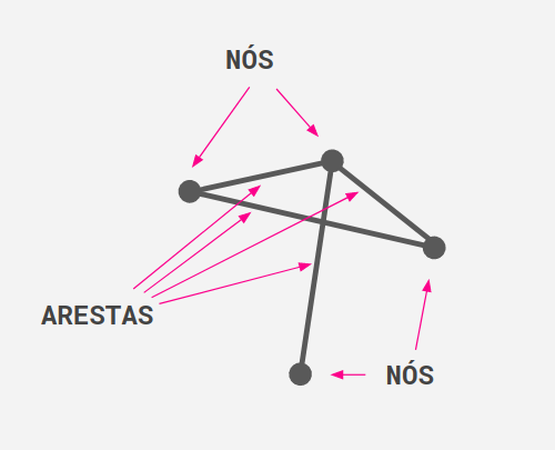 Antes de botar a mão na massa, vamos fixar alguns conceitos básicos. Assim como tabelas possuem colunas e linhas, os gráficos também têm em sua formação dois elementos essenciais: os nós e as arestas. Vejamos o que significa cada um deles.